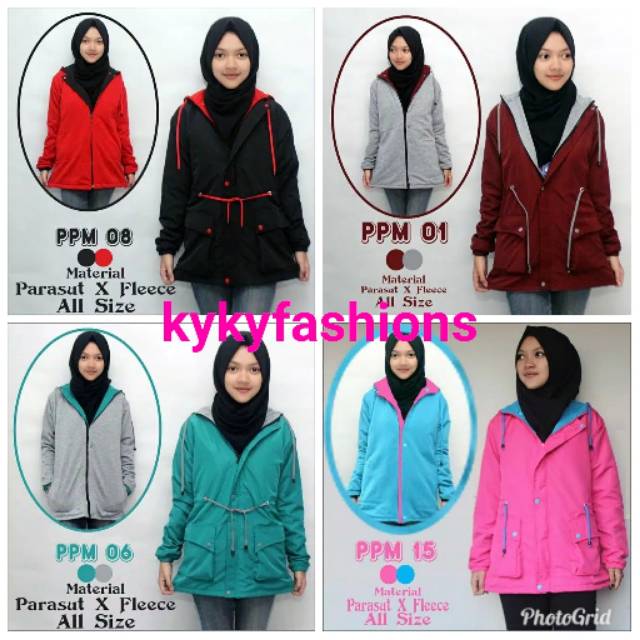 Jaket Parka Wanita Bisa Bolak Balik Bahan Parasut / Fleece, Olshop Fashion, Olshop Wanita di Carousell