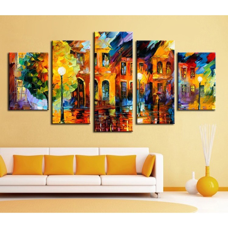 5 Pcs Lukisan Dinding Gambar Jalanan Kota Yang Indah Dilukis Tangan Dengan Palet di Atas Kanvas | Shopee Indonesia