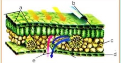 Dari gambar diatas jelaskan fungsi jaringan parenkim palisade dan parenkim spons pada daun? - Mas Dayat