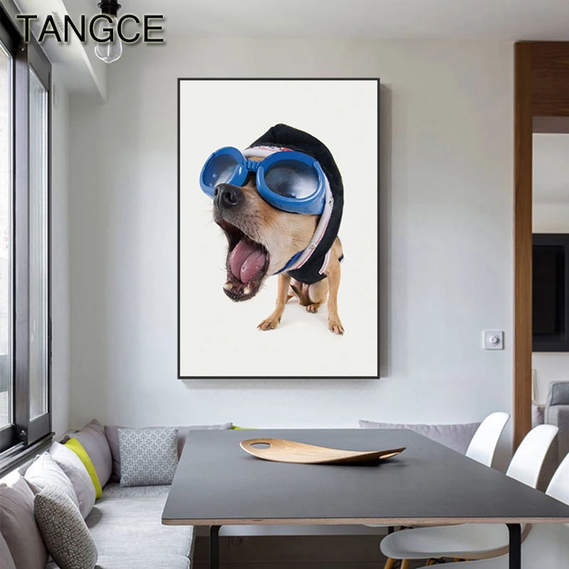 Anak Anjing dengan Kacamata Ular Kuda Kanvas Lukisan Ctue Bodoh Kartun Poster Cetak Seni Dinding Gambar untuk Ruang Tamu Abstrak Dekorasi|Painting & Calligraphy| - AliExpress