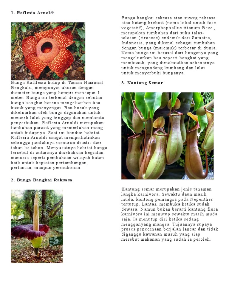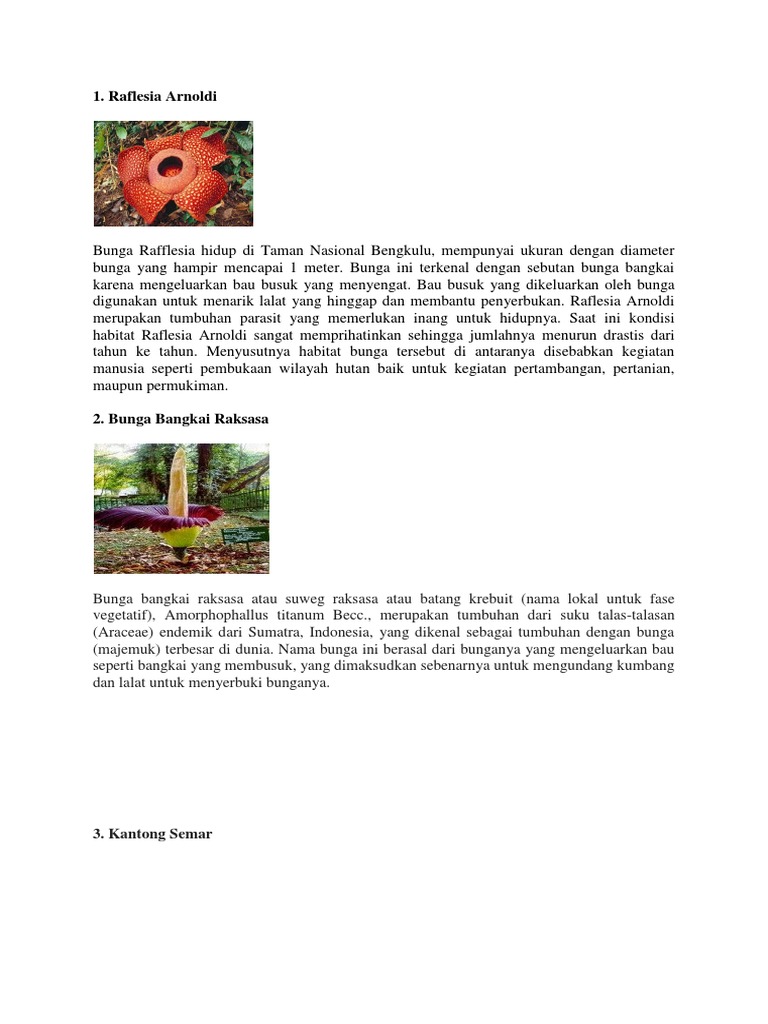 2. Di bawah ini yang termasuk tumbuhan langka adalahA. Bunga Raflesia dan kantong semar B. Bunga - Brainly.co.id