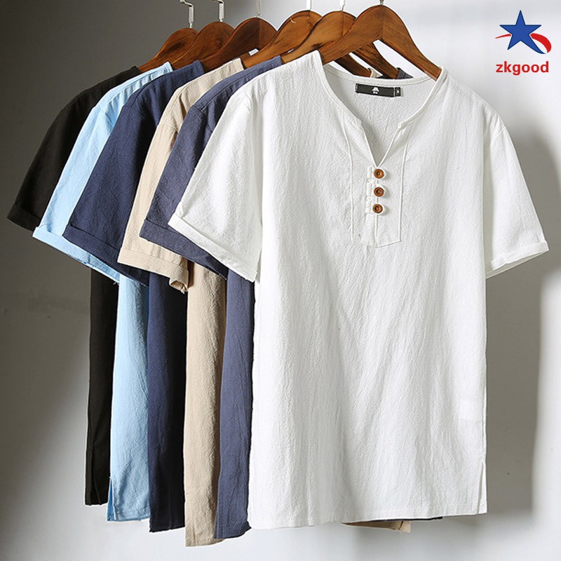 Kaos T-Shirt Lengan Pendek Bahan Katun Tipis dengan Kancing untuk Pria, Ada Ukuran Besar | Shopee Indonesia