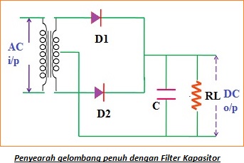 Rangkaian penyearah gelombang penuh dengan kapasitor sebagai filter