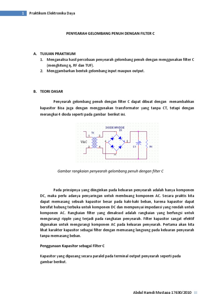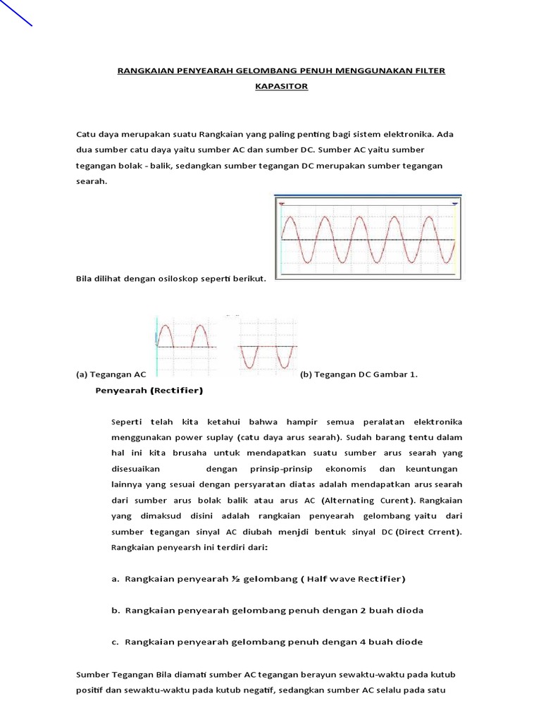 DOC) Rangkaian Penyearah Gelombang Penuh Menggunakan Filter Kapasitor | respati ningsih - Academia.edu