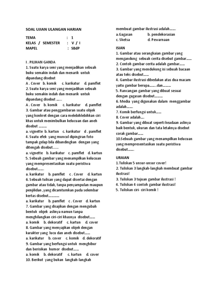 SOAL UJIAN ULANGAN HARIAN membuat gambar ilustrasi adalah…….