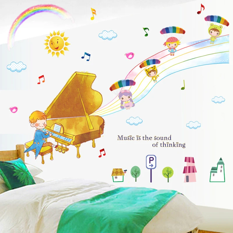 Kartun Melodi Musik Stiker Dinding Anak Kecil Bermain Piano Lucu Anak Rainbow Cloud Anak anak Kamar Bayi Dekorasi Kamar Tidur Diy PVC stiker|Wall Stickers| - AliExpress