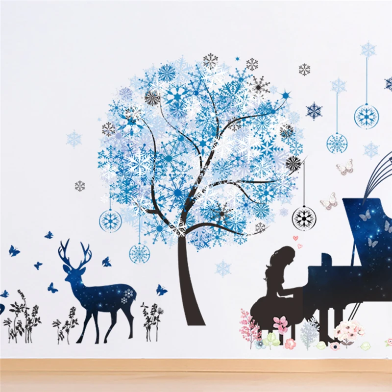 Gambar Kartun Gadis Bermain Piano Dandelion Rusa Butterfly Wall Stiker untuk Anak anak Kamar PVC Stiker Dinding Bunga Peri Lukisan Dinding Seni|butterfly wall decals|wall decalsbutterfly wall - AliExpress