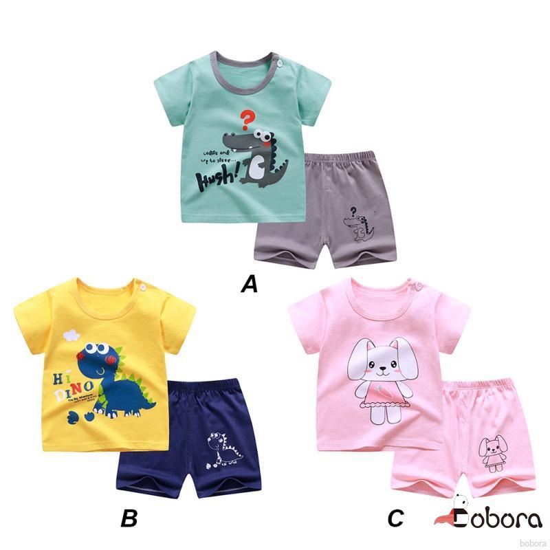 BOBORA Setelan Kaos T-Shirt Casual Bayi Laki-laki / Perempuan Lengan Pendek Gambar Kartun + Celana | Shopee Indonesia