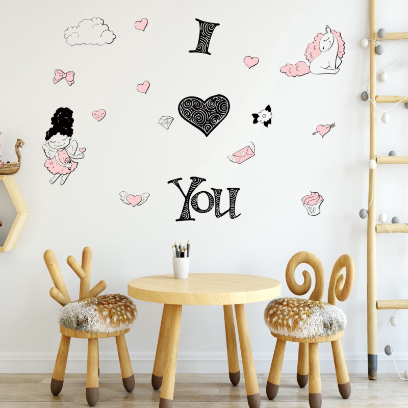 I Love You-kartun Anak Kamar Gadis Dekorasi Wall Stiker | Shopee Indonesia