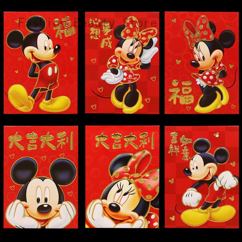Amplop Angpao Tahun Baru Imlek Gambar Kartun Mickey Mouse Warna Merah untuk Hadiah Tahun Baru | Shopee Indonesia