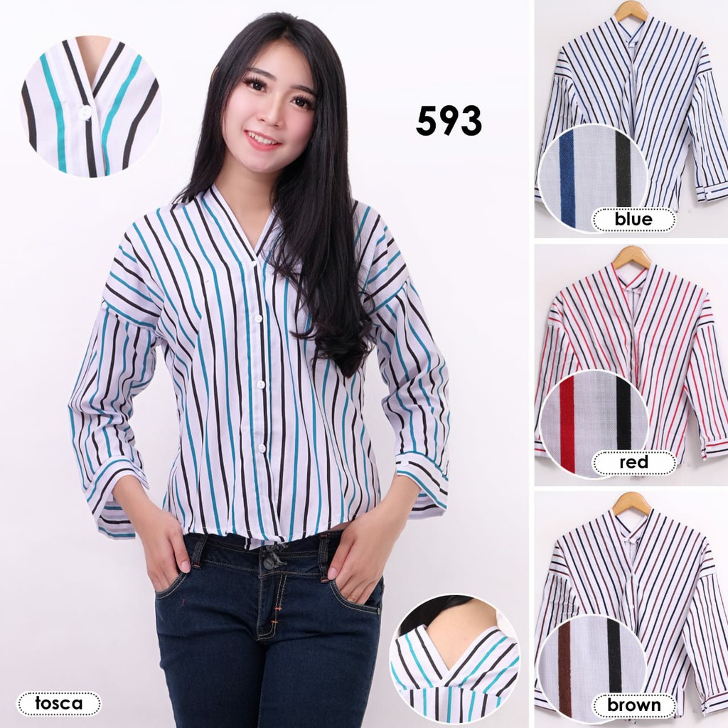 Gambar Baju Kemeja Wanita Terbaru- Baju Atasan Kerja Kemeja Kitty Stripe Blouse Wanita Korea Import Tunik Terbaru 2018 Ame1053 - D… di 2020 | Kemeja wanita, Wanita, Kemeja