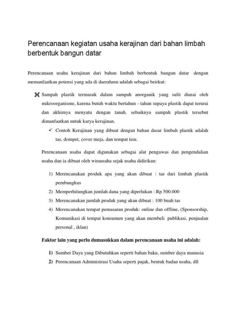 membuat perencanaan usaha kerajinan dari bahan limbah berbentuk bangun datar terima kasih - Brainly.co.id