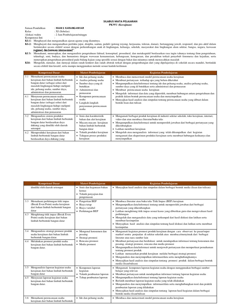 Silabus Pkwu Xi
