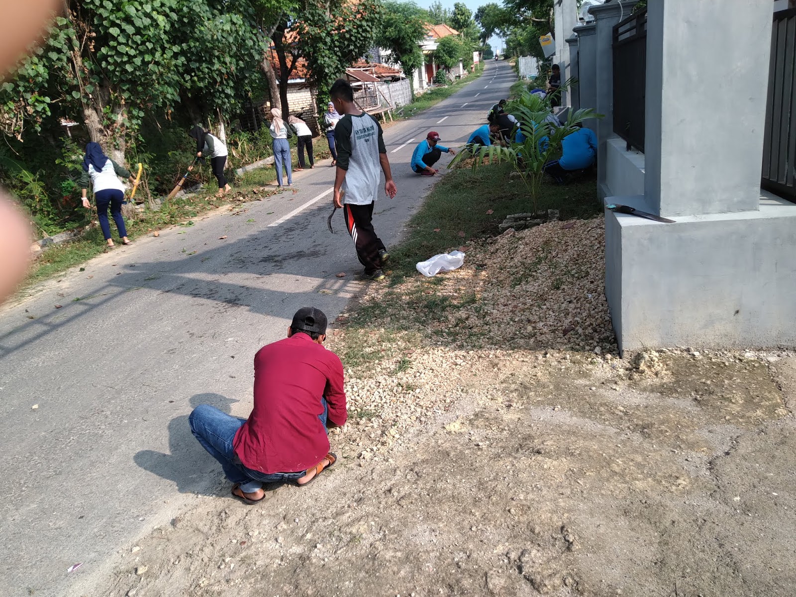 Kerja bakti perangkat desa membersihkan jalan poros desa | Desa Sendangrejo