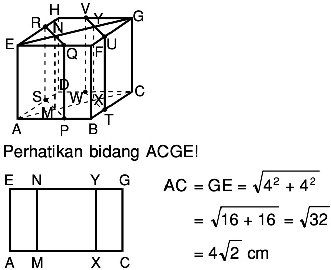 Dik kubus abcdefgh dgn panjang rusuk 4 cm . Titik p adalah titik potong ah dgn ed dan titik q - Brainly.co.id