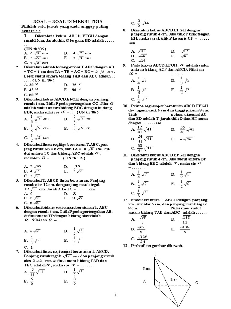 DOC) CONTOH SOAL DAN PEMBAHASAN TENTANG DIMENSI TIGA | sabna salsabillah - Academia.edu