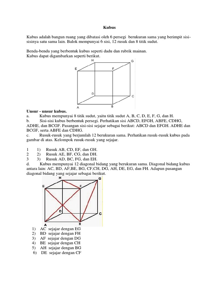 Pada kubus ABCD.EFGH,diagonal sisi yang saling sejajar adalah - Brainly.co.id