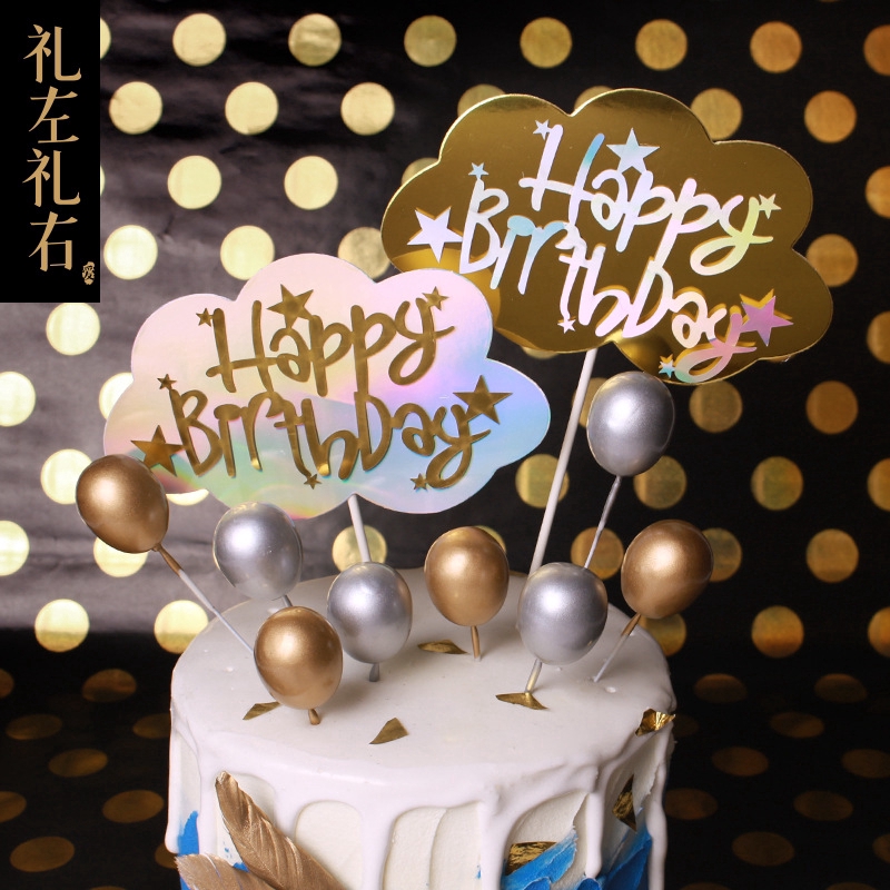 Gold Silver Laser Cloud Balloon “Happy Birthday” Cake Topper | Shopee Singapore