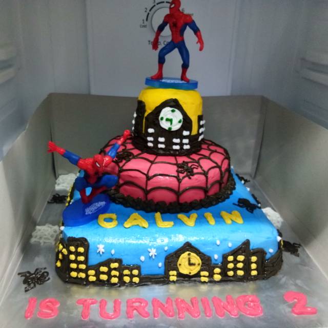 KUE ULANG TAHUN-KUE ULTAH SPIDERMAN 2 SUSUN 30X30 CM di Lapak musin siregar | Bukalapak