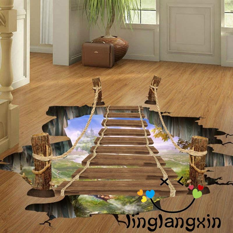 Stiker Dinding dengan Bahan Vinyl dan Gambar Jembatan Kayu 3D untuk Lantai Rumah | Shopee Indonesia