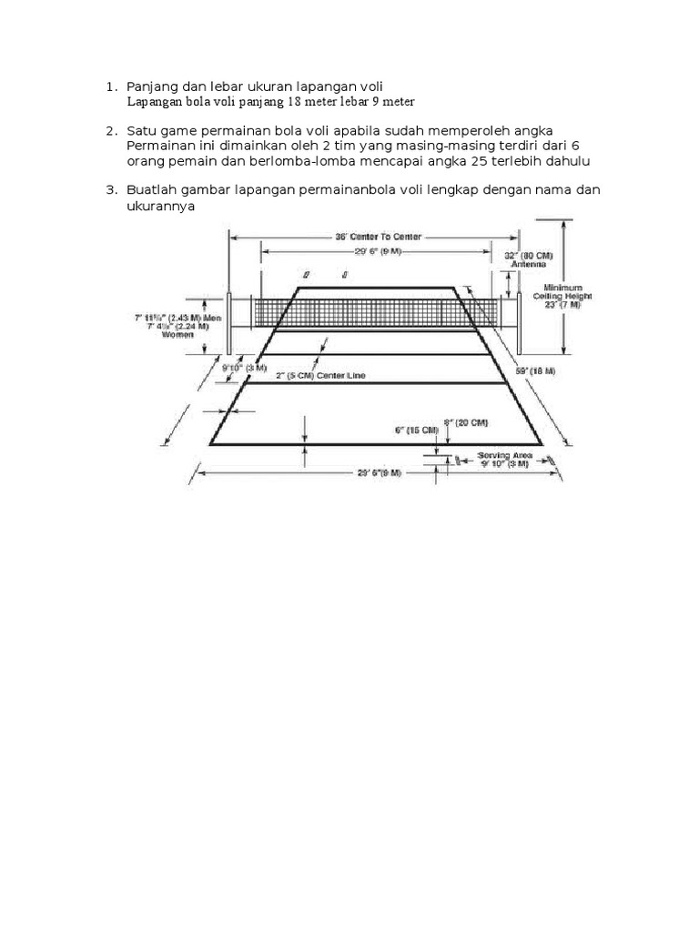 Panjang Dan Lebar Ukuran Lapangan Voli
