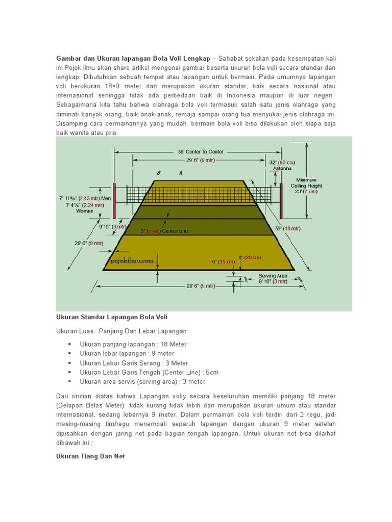 Ukuran Lapangan Bola Voli Standar Nasional Internasional Adalah | Bola voli, Pengukur