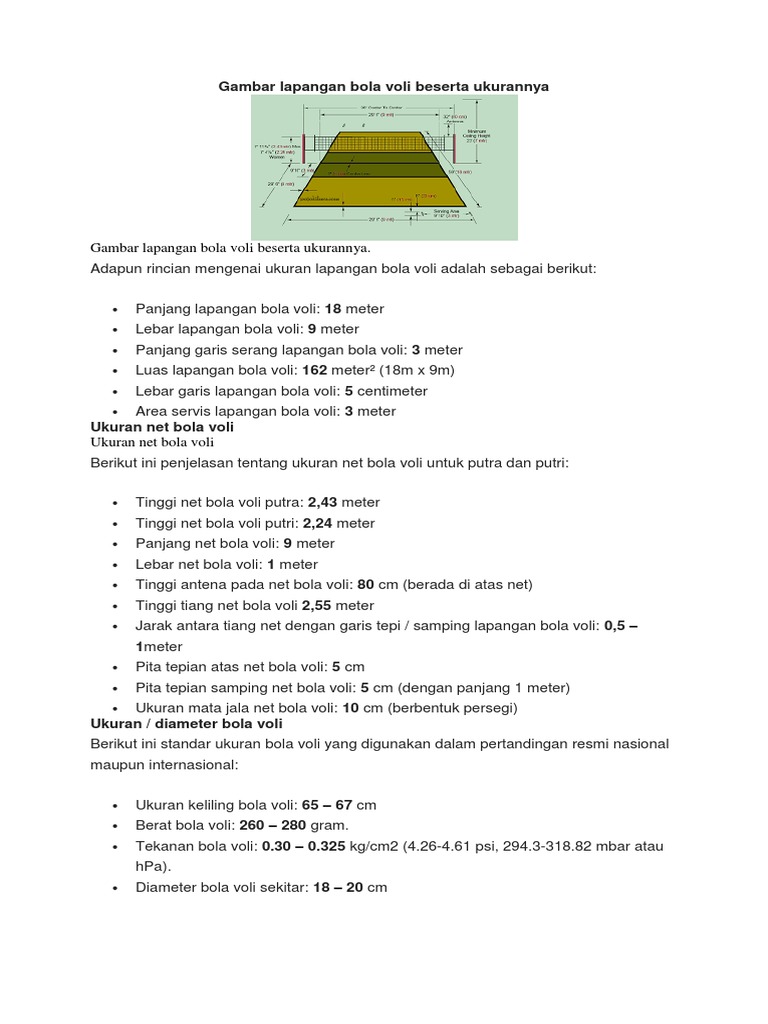 Gambar Lapangan Dan Ukuran Bola Voli