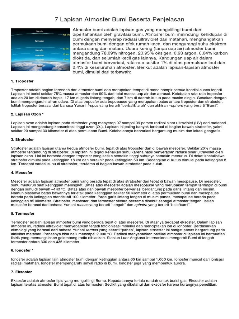 sebutkan lapisan lapisan atmosfer beserta penjelasannya! - Brainly.co.id