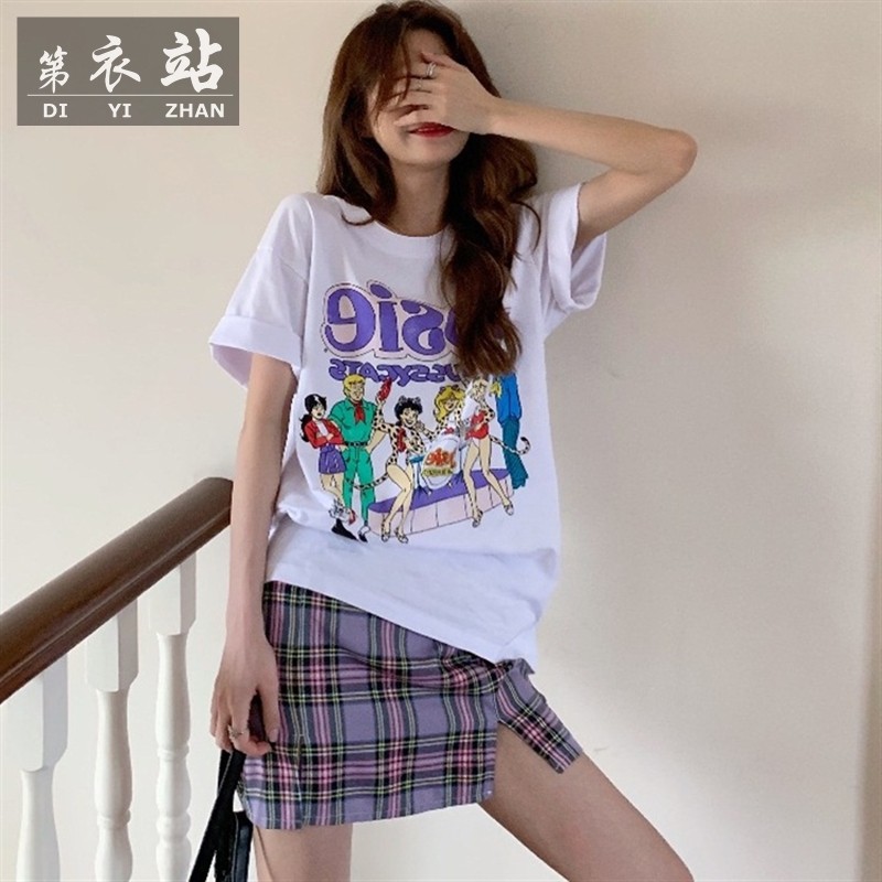 Kaos T-shirt Wanita Dengan Model Potongan Longgar Dan Gambar Kartun Kuda Hantu Bergaya Retro | Shopee Indonesia