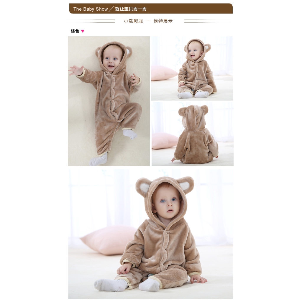 Jumpsuit Flanel Bayi Laki-laki/perempuan Lengan Panjang Gambar Kartun Beruang | Shopee Indonesia