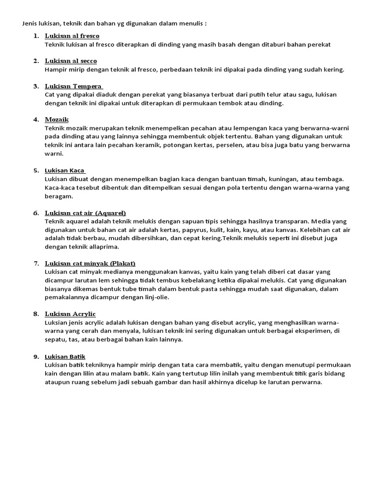 DOC) SENI RUPA LIMA JENIS TEKNIK MELUKIS YANG PALING SERING DIGUNAKAN | Stefhanie Berliana - Academia.edu