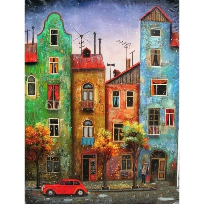 Lukisan Minyak Gambar Gedung Perkotaan untuk Dekorasi | Shopee Indonesia