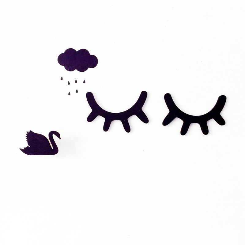 globeagle 2pcs Nordic Cute Wood Eyelashes Pattern Cartoon 3D Sleepy Eyes Wall Sticker | Shopee Philippines