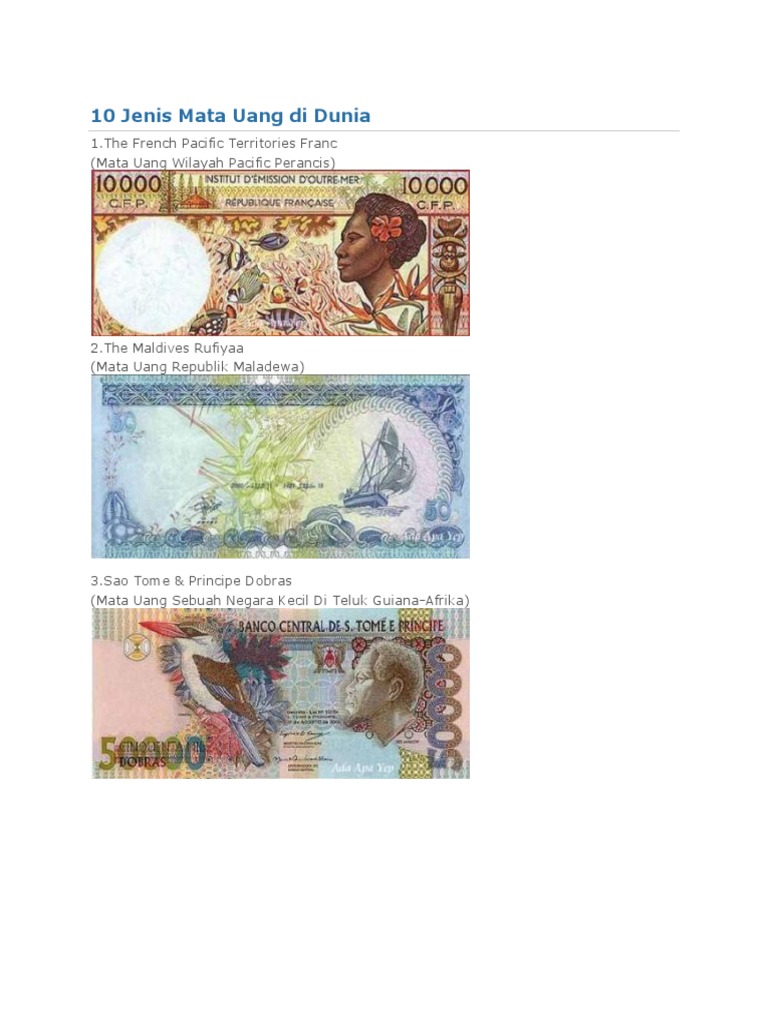 10 Jenis Mata Uang di Dunia: 1.The French Pacific Territories Franc (Mata Uang Wilayah Pacific Perancis)