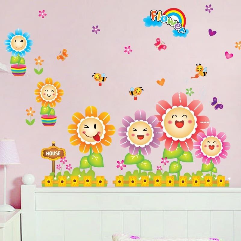 Kartun matahari bunga stiker dinding, Kamar anak-anak, TK stiker dinding, Bayi tidur latar belakang stiker dinding dekoratif | Shopee Indonesia