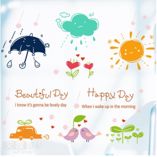 Stiker dinding dilepas, Awan matahari bunga TK kamar tidur kamar anak-anak, Ubin kamar mandi, Toilet | Shopee Indonesia