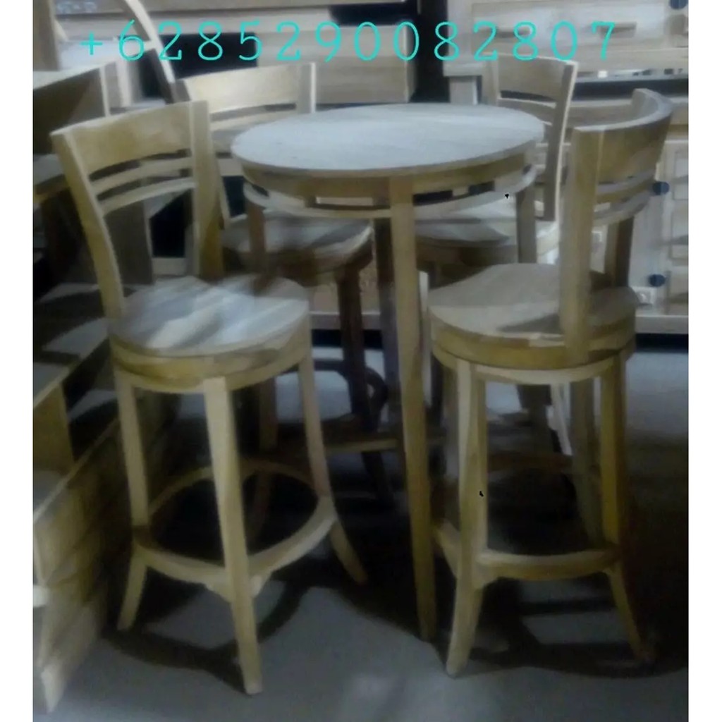 Set Kursi Meja Bar Minimalis Bundar Kayu Jati Cafe Restauran Terbaru | Shopee Indonesia