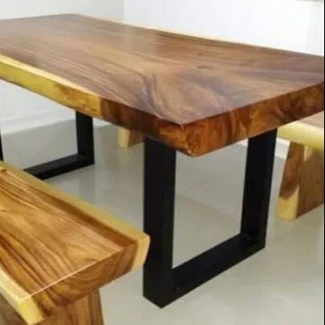 Meja kayu trembesi solid kaki besi | Shopee Indonesia