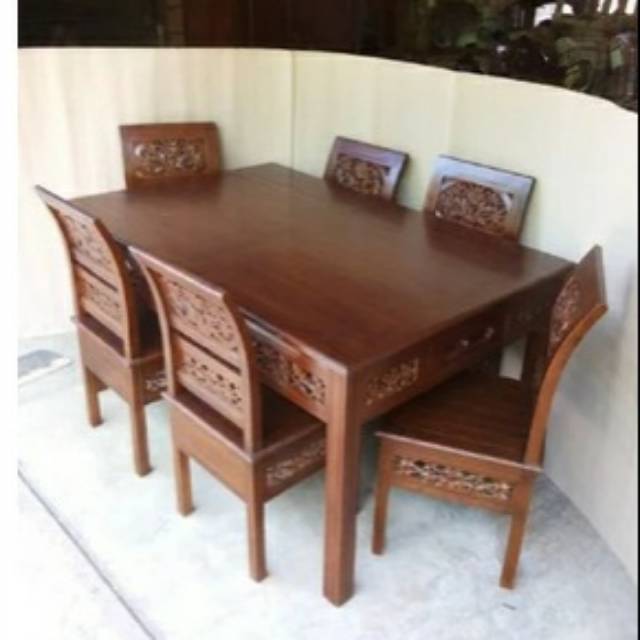 Jual Meja Makan Kayu Jati, Meja Kursi Makan Minimalis Free Ongkir - Kab. Jepara - Rumah Ukir Jati Jepara | Tokopedia