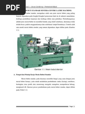 2 1. Jenis Mesin bubut berdasarkan ukurnnya secara garis besar dibedakan menjadi: - PDF Free Download