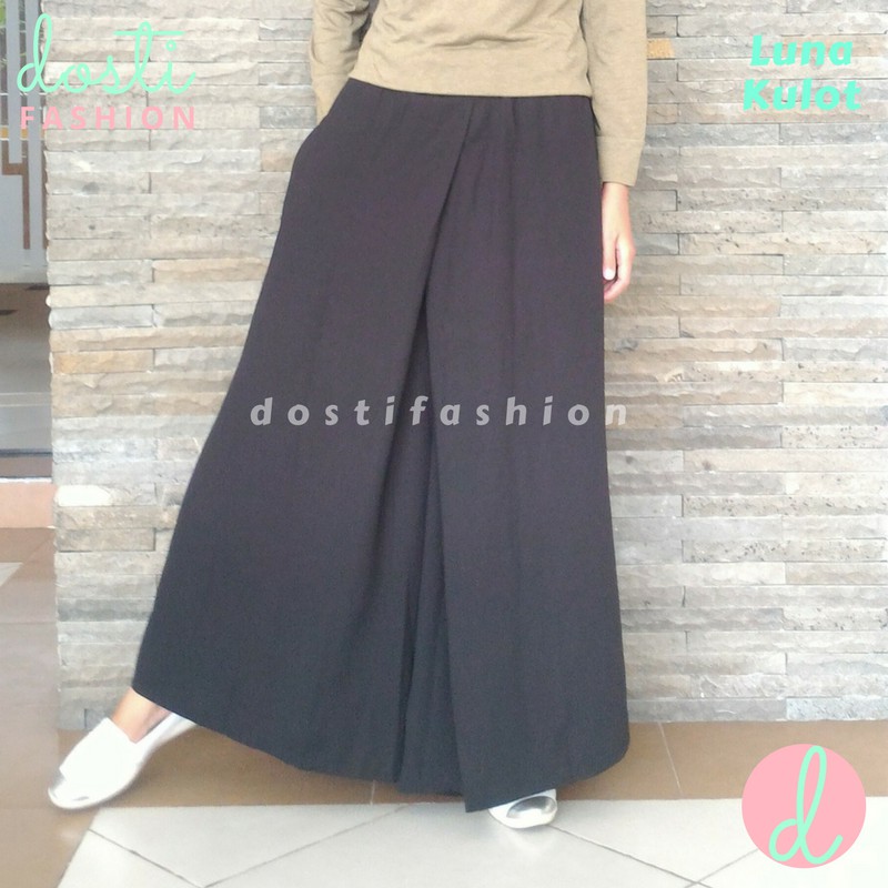 Celana Kulot Rok Model Terkini Kekinian Import Polos Rosela Pinggang Karet Lebar Hitam Murah Modis | Shopee Indonesia