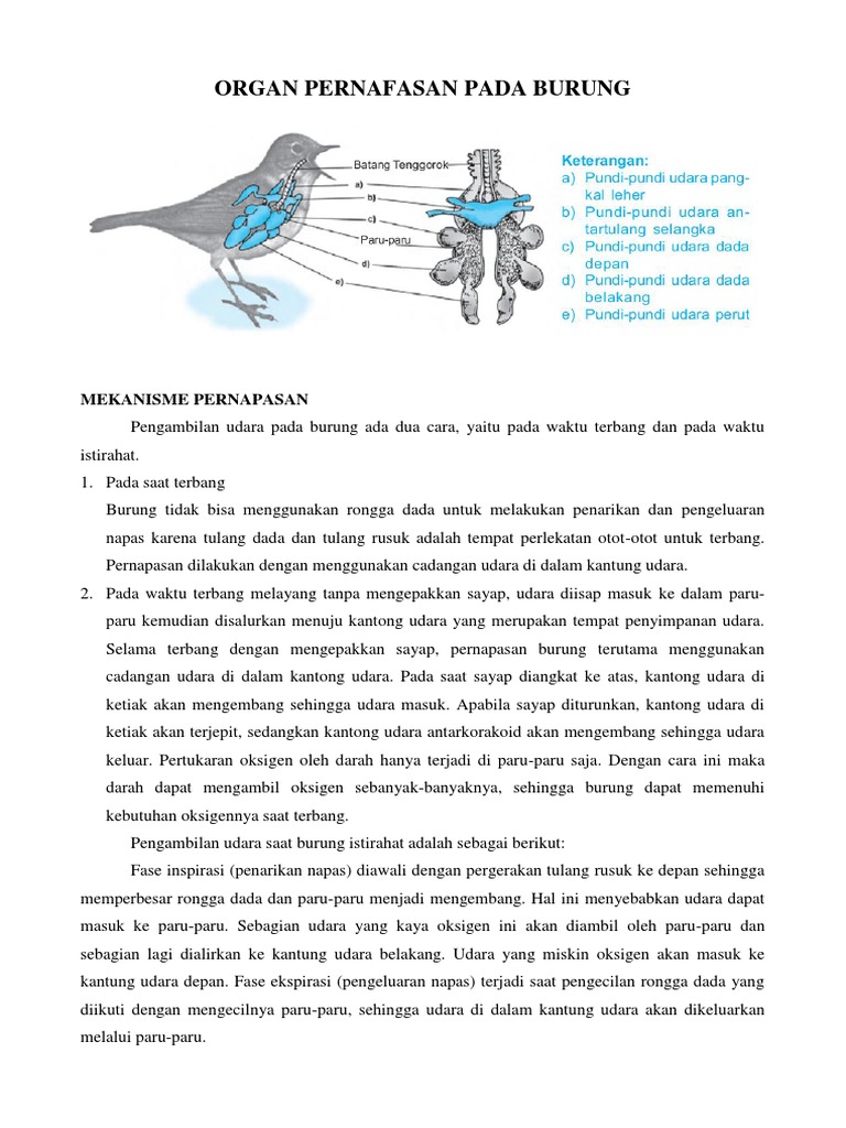 Sistem pernapasan burung: fungsi, struktur - Sains 2020