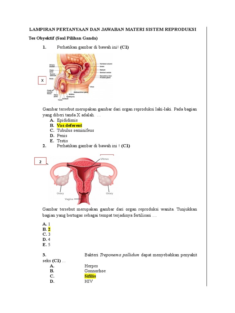 Lampiran Pertanyaan Dan Jawaban Materi Sistem Reproduksi