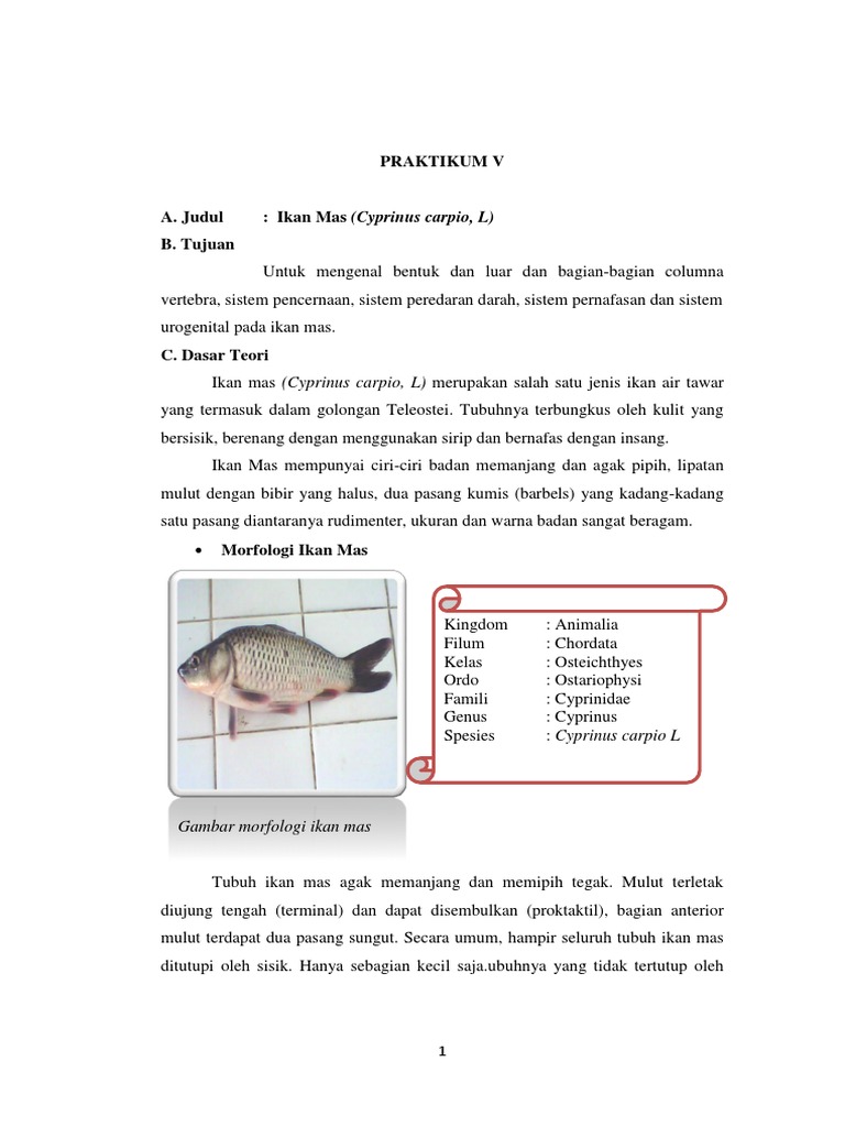 DOC) Laporan Praktikum Biologi Dasar (ORGAN IKAN MAS) | Alma Luthfiani - Academia.edu