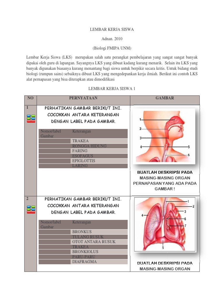 Sistem Pernapasan pada Manusia Manusia… - SDN 01 Bumi Dipasena Agung | Facebook