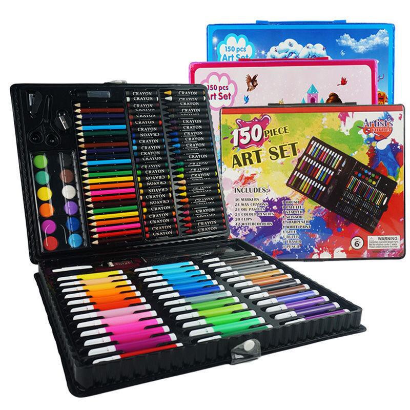 168 Pcs Pena Gambar Seni Mainan Set Lukisan Sketsa Pensil Warna Krayon Pastel Minyak Air Lem Warna dengan Kasus untuk anak Anak|Menggambar Mainan| - AliExpress