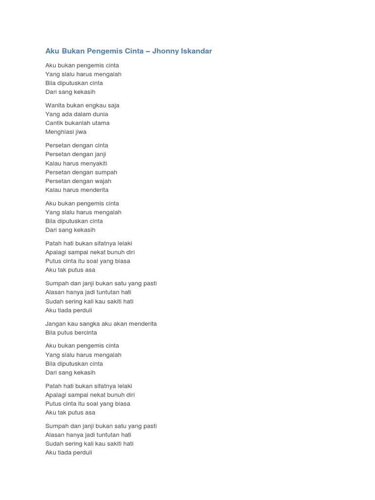 Lirik dan Chord Lagu Bukan Pengemis Cinta - Jhonny Iskandar Halaman all - Kompas.com
