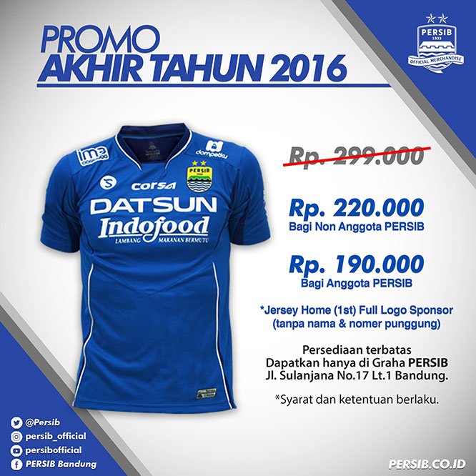 PERSIB on Twitter: “Promo akhir tahun dari #PERSIB untuk #Bobotoh .. dapatkan segera Jersey PERSIB 2016 *persediaan terbatas https://t.co/WUzgDwox0s… https://t.co/CZp1xNFnR9”