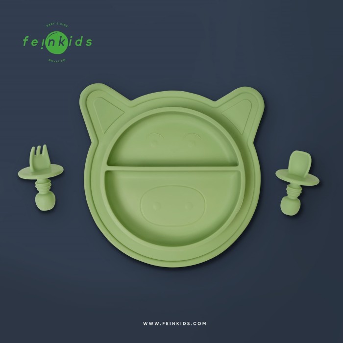 Jual Feinkids Peralatan Makan Silikon Bayi Set Piring Sendok Garpu - Green - Kota Surabaya - Feinkids | Tokopedia