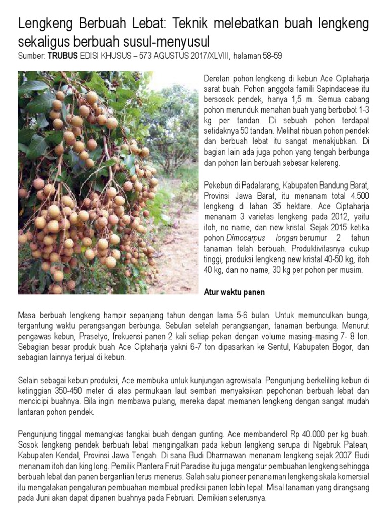TRIK SUPAYA KELENGKENG BERBUAH LEBAT… - Pertanian Indonesia | Facebook